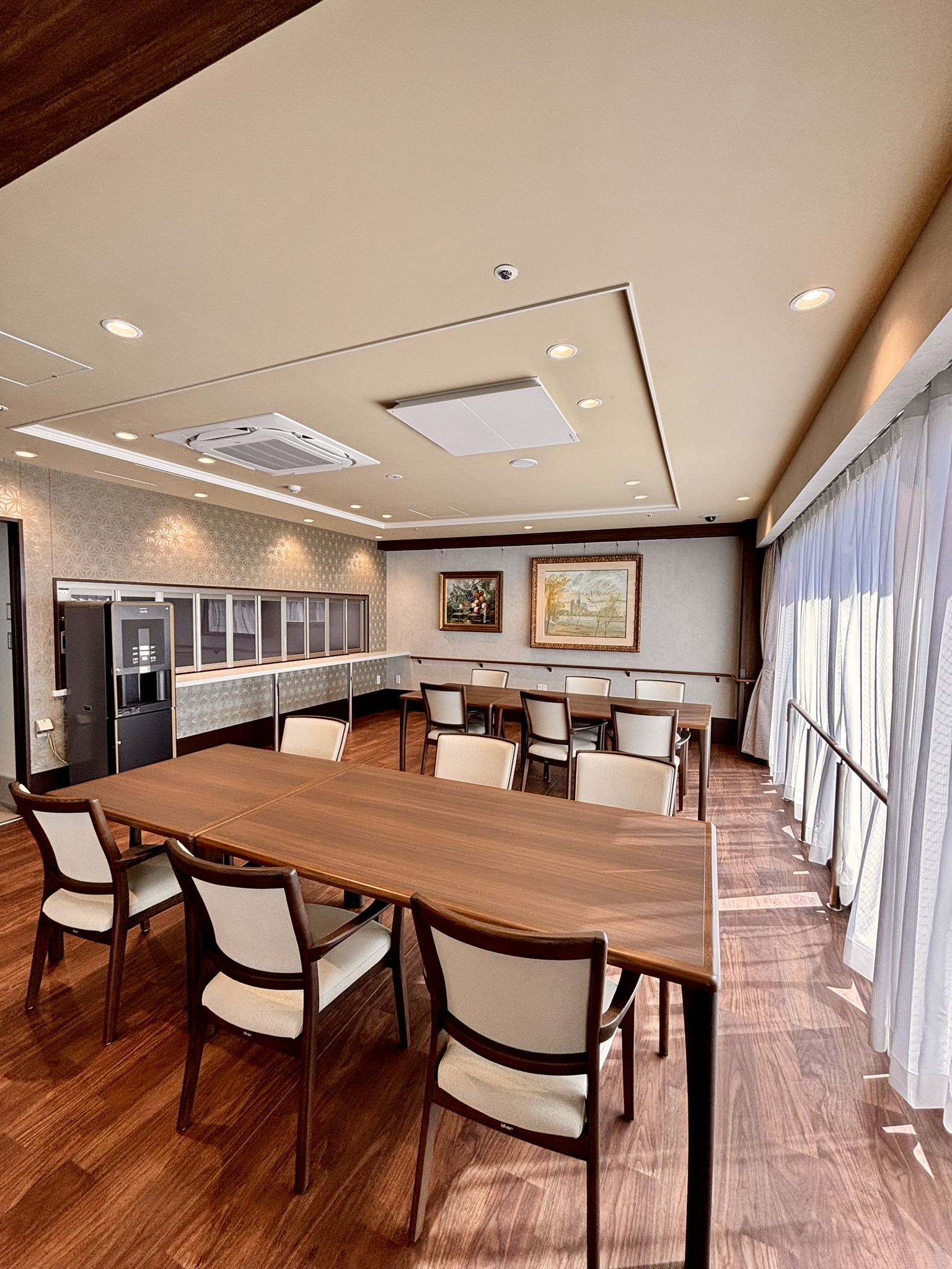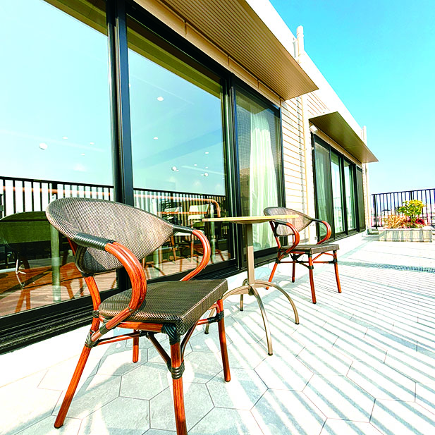 急な体調不良や、緊急事態にもすぐに対応できる体制を整えているので安心です。居住空間としては、他の介護施設にはない、ここだけのアピールポイントが2つあります。最上階は眺望レストランです。健康的でおいしい食事、シェフの手作り料理をご堪能頂けます。さらにその屋上庭園はとても気持ちよい癒しの空間です。